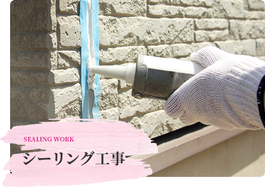 シーリング工事とは、外壁とサッシの隙間など、目地の隙間を埋める工事のことです。外壁材の内側に雨水が入りにくくなり、外壁の劣化を防ぐことができます。